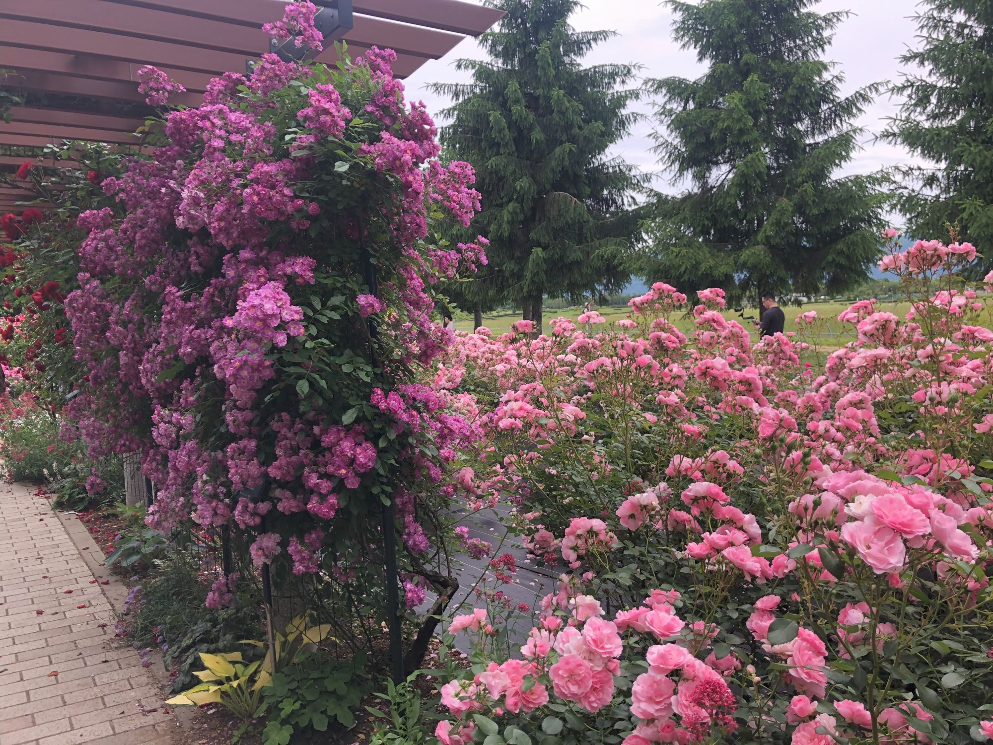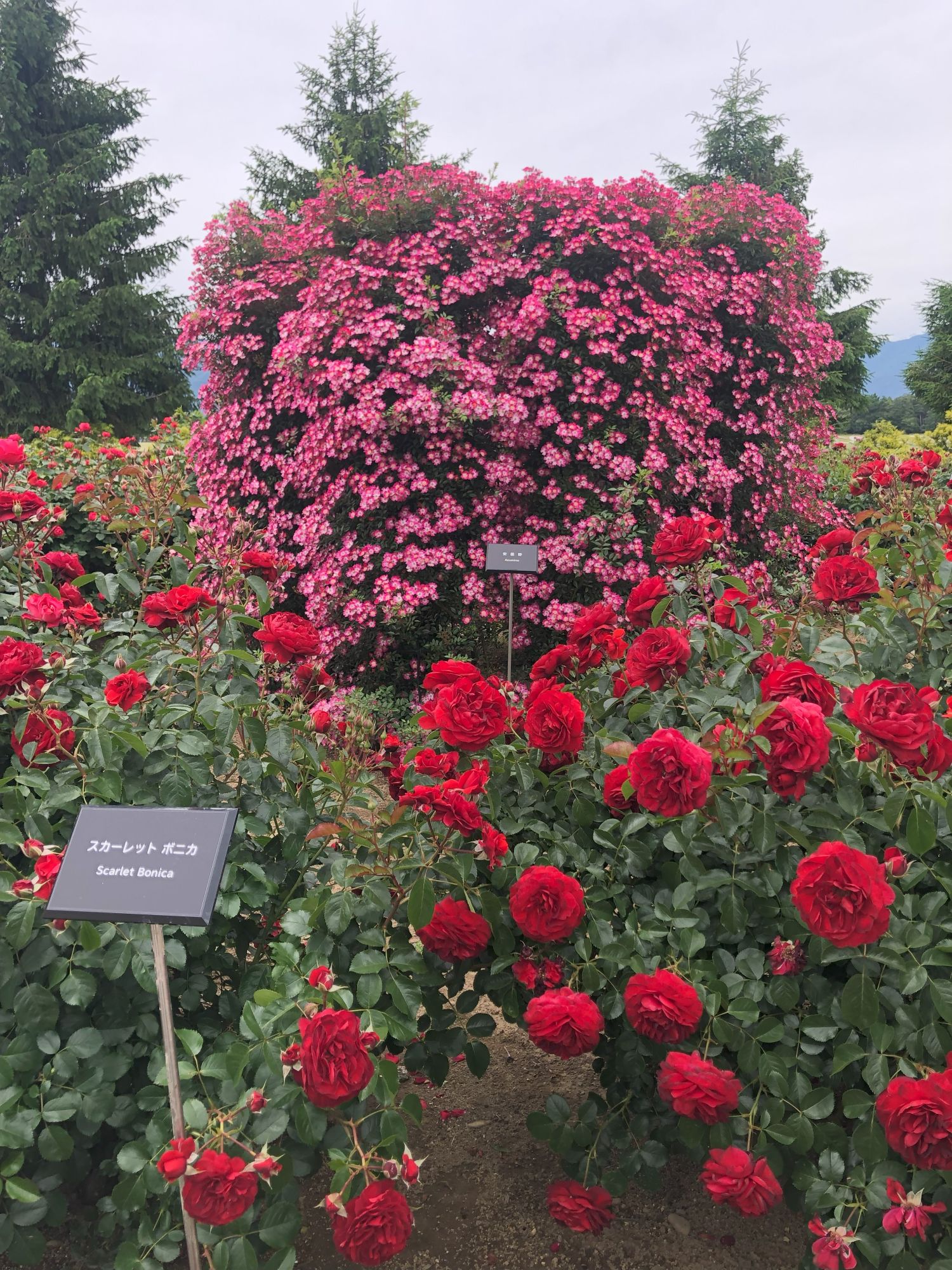 停车场附近的路标提示。顺着“玫瑰园(バラ園)”的方向眼前就是这般花海世界