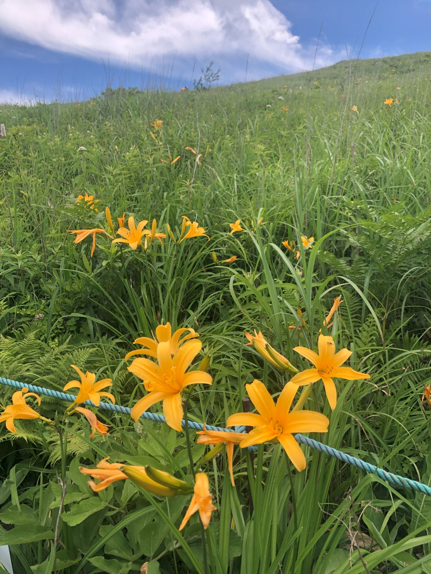 美ヶ原高原,盛夏时节,遍野金黄的花海令人心醉神迷。其中最引人注目的,便是盛开的日光黄菅(ニッコウキスゲ)。每年七月中旬至八月初,这种生长于高海拔地区的多年生草本植物,犹如诗画一般地点缀着草原轮廓,成为夏季自然界最迷人的一幕。