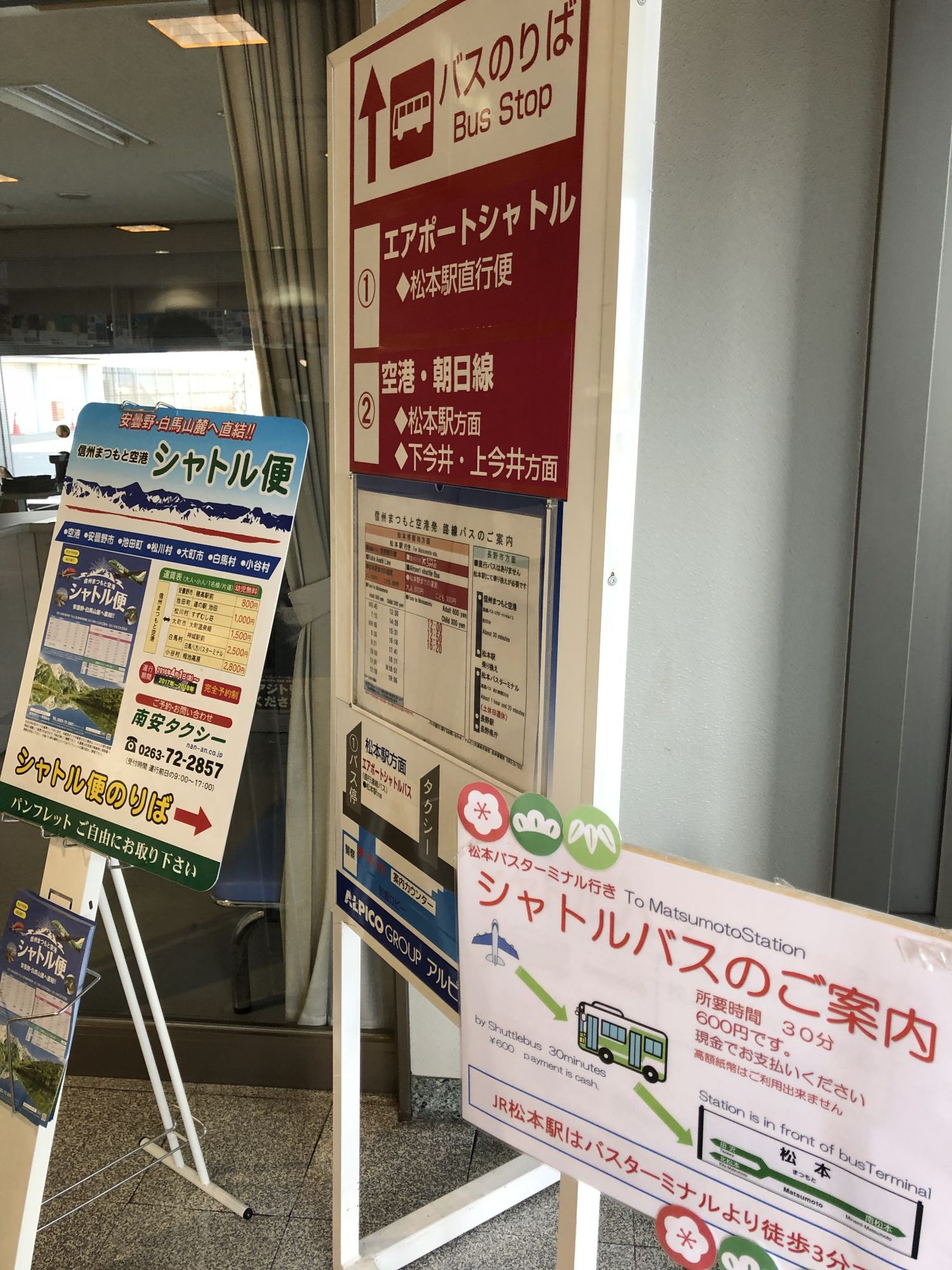从松本空港可直飞北海道的札幌和九州的福冈。因为机场周围山高,滑行道长宽度有限,故目前还飞不了大型客机。国际线也还没有定期航班。从松本市内开车20多分钟就能到,而且停车场是免费的。真希望能开通直飞中国的航班,那回国可就方便了!
