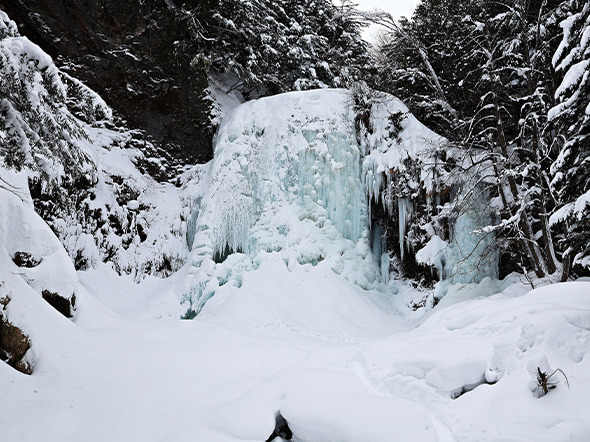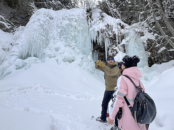 想體驗不同於滑雪、單板的冬日樂趣嗎?不妨試試雪鞋健行。踩著鬆軟積雪,漫步在靜謐的森林裡,享受冬季限定的奢華時光。即使是初學者,也能安心參加導覽行程,造訪落差約22公尺的「善五郎瀑布」冰瀑奇景。宛如大自然的冰雕,壯麗而純淨,帶來洗滌心靈的特別體驗。