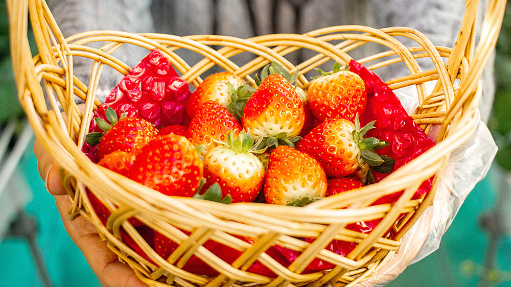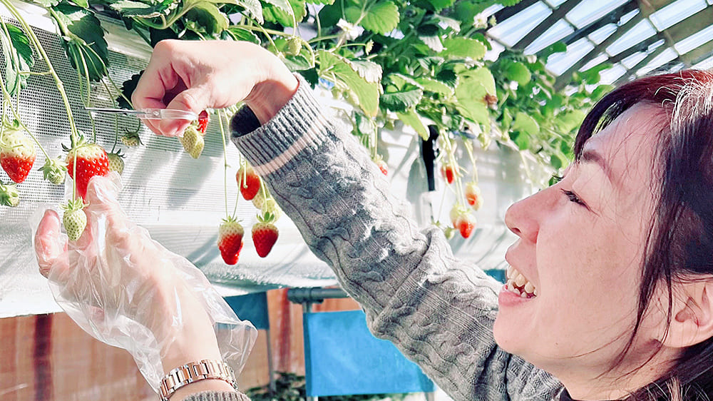 淺間溫泉體驗採摘音泉草莓的樂趣離松本市中心不遠的「淺間溫泉」草莓採摘,對許多觀光客來說既方便又富有魅力。這裡有一家「Waiwai廣場」,培育著來自淺間溫泉的新名產「音泉草莓」,據說是聽著音樂成長的。紅潤可愛的外觀與鮮美多汁的口感是其特色,除了夏天之外的季節都能在溫暖的溫室裡採摘。在輕鬆愉快的採摘過程後,當場品嘗新鮮草莓的時光最令人期待。除了現摘的草莓,還可以喝到原汁原味的音泉草莓果昔。相信品嘗過的人,一定會被音泉草莓酸甜適中的美味所深深吸引!