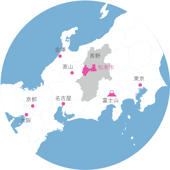 松本市交通便利,從新宿搭乘「特急梓(Azusa)號」約2小時 30分即可抵達,從名古屋搭乘「信濃號列車」約2小時也能到達。其他主要觀光城市前往松本的交通同樣十分方便。